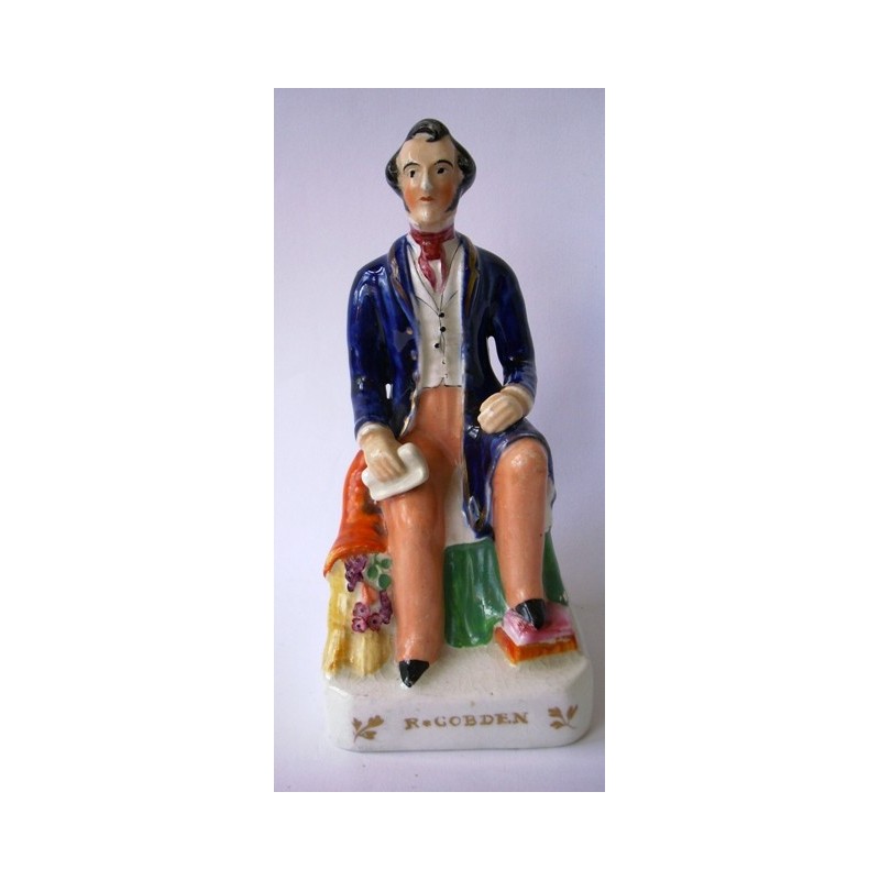 Seated beside a sheath of corn - representing repeal of the corn laws.